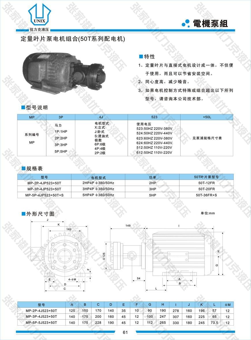• 所屬分類:定量葉片泵電機組合(50T系列配電機)